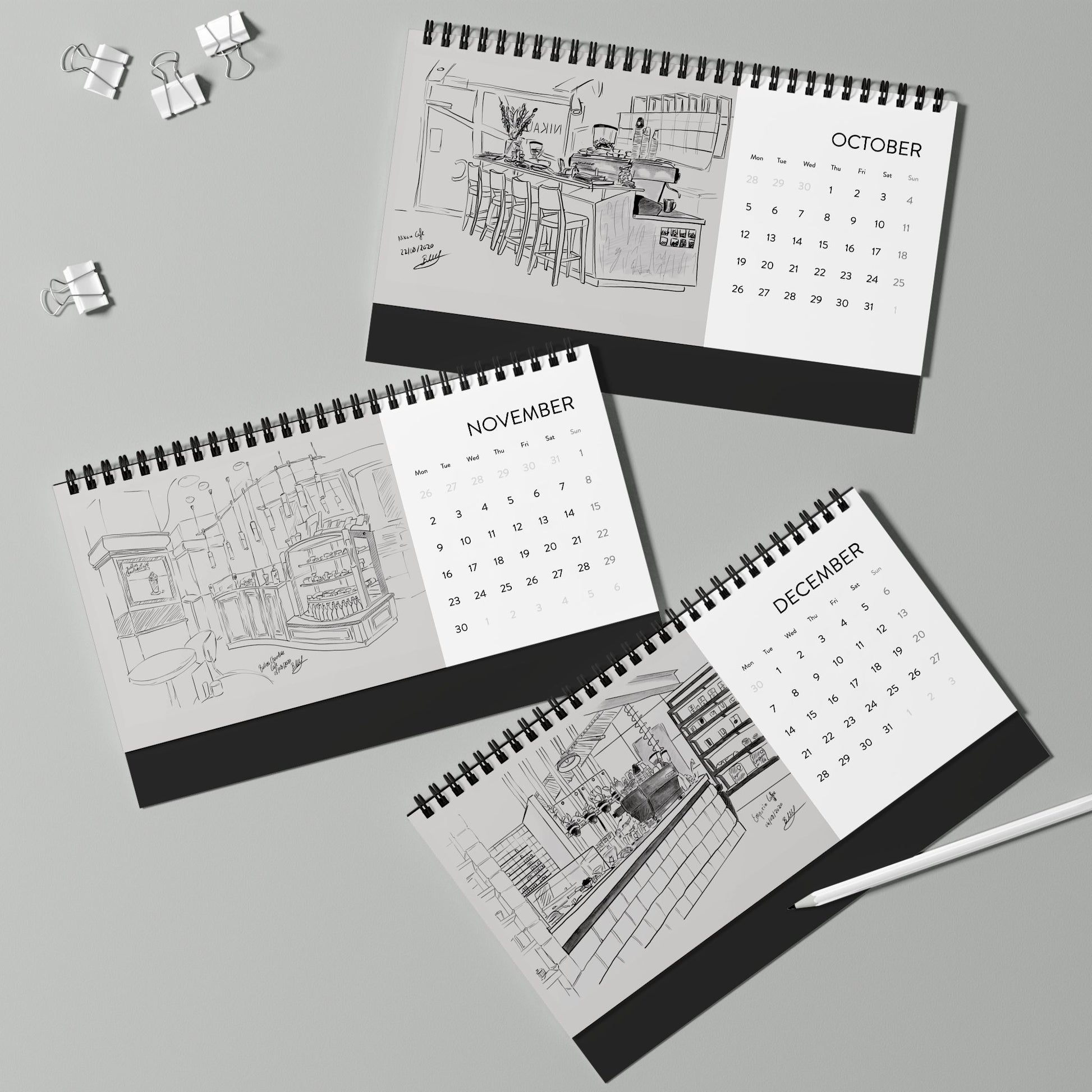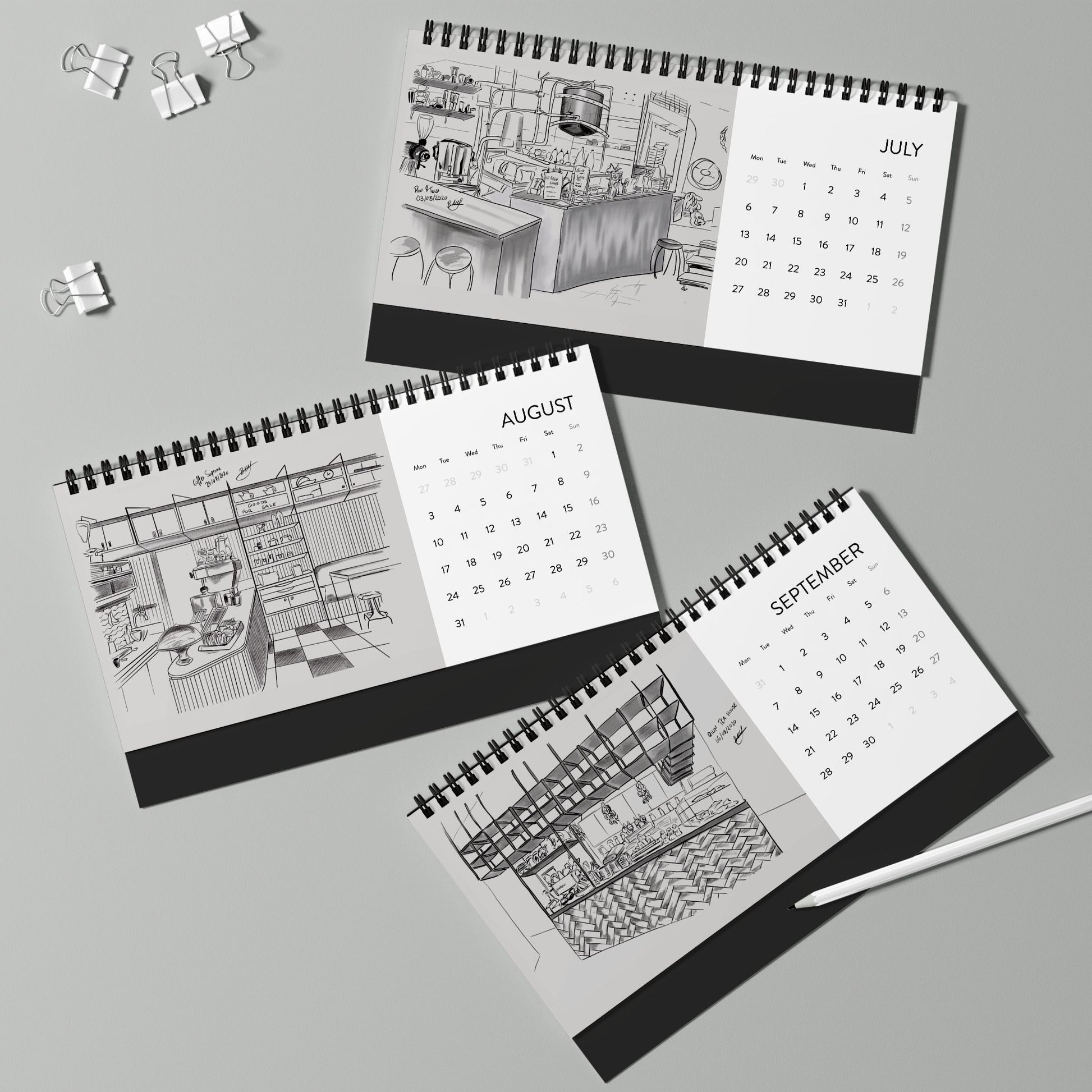 Your drawings are lovely - sparse, evocative, suggestive in that you made me stop and think - have I been in that space? How would I fill that space? So interesting to think that you might be in a place, just buying a coffee as part of a daily routine & barely thinking about it, and there is someone else in the room who is truly looking at that place, documenting it, studying it.